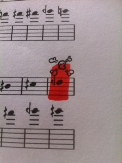 Blue = These blue marks above some of the yellow and red pitches indicate special trill fingerings. Often these trill fingerings can not be used in running passages, but it means that even though you can’t write a D to an E quarter sharp in a running passage (in tune!) (as in the above example), you can use it as an isolated trill. You shouldn’t need to add the fingering to your score, these special fingerings are almost always a combination of the right hand trill keys, which most clarinetists should be able to figure out without any difficulty, but if they don’t have an option and tell you it isn’t possible, you can refer them to the chart which hopefully will help clarify things.